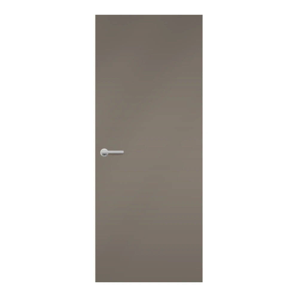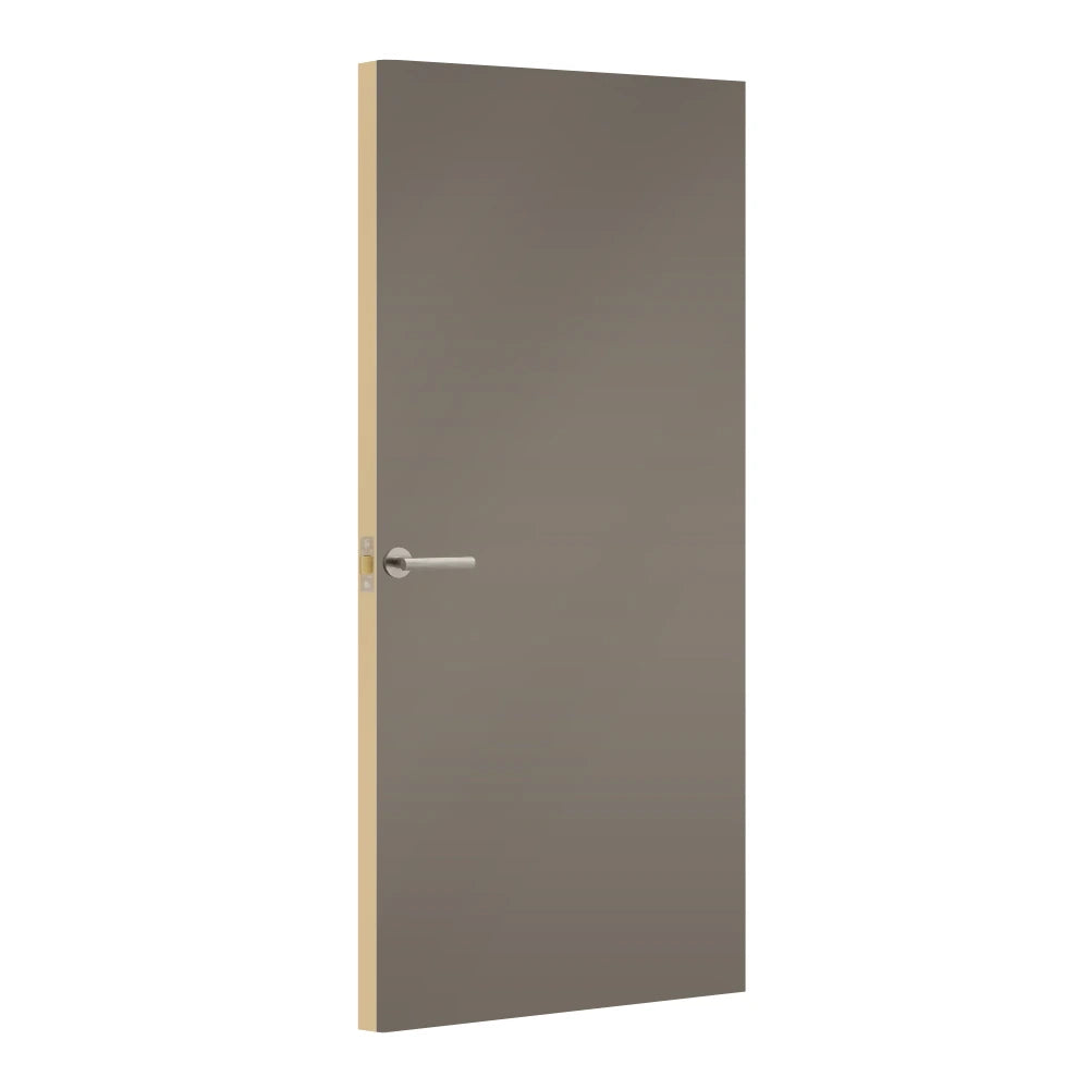 Cubanit Grey Egger laminate door, angled view showing edge lippings Cubanit Grey Egger laminate door in medium taupe shade, front view